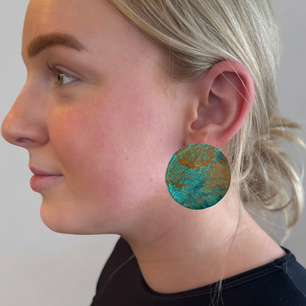 Each piece in this elegant jewellery collection begins as an original abstract painting, lovingly created on richly textured, handmade Indian paper—a surface that brings depth and character to every brushstroke.