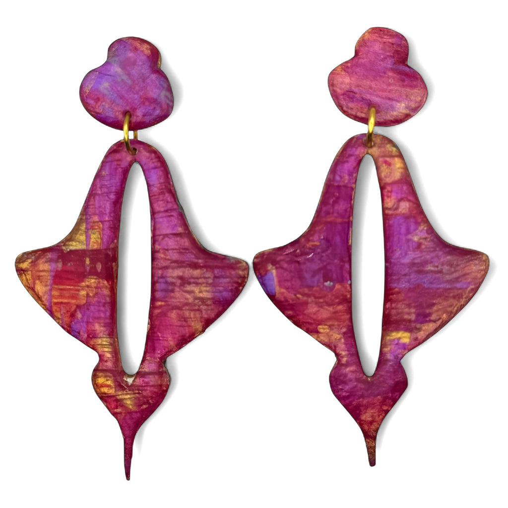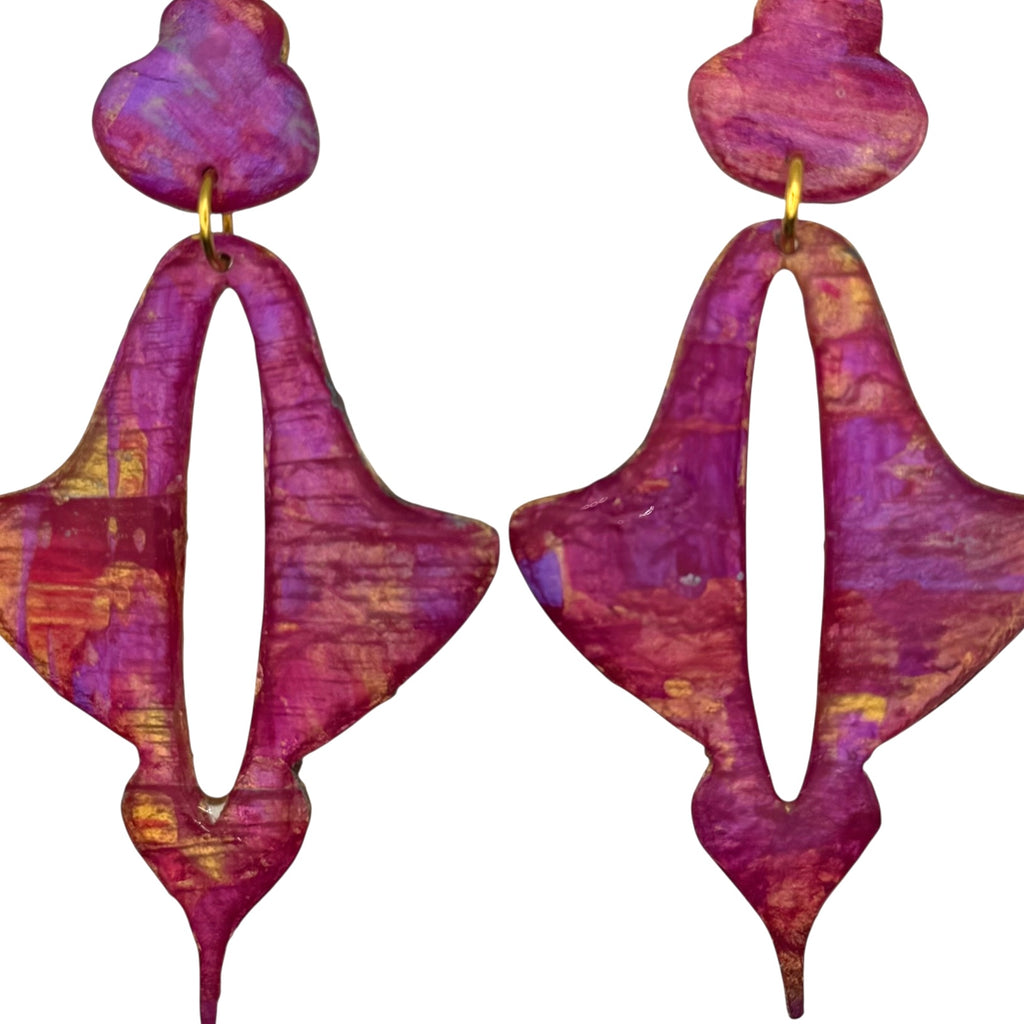 Moroccan Drop large earrings in art work- Porlock Sunset.
