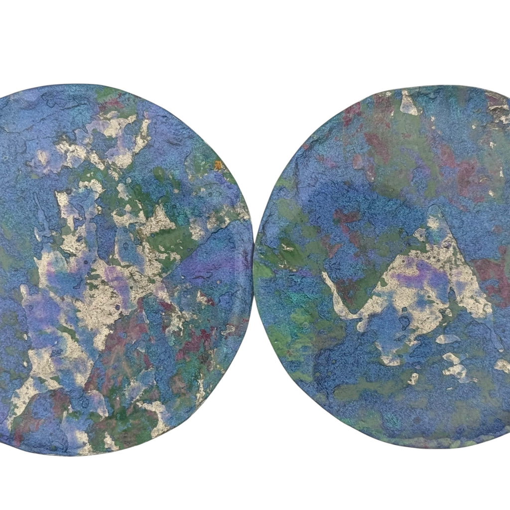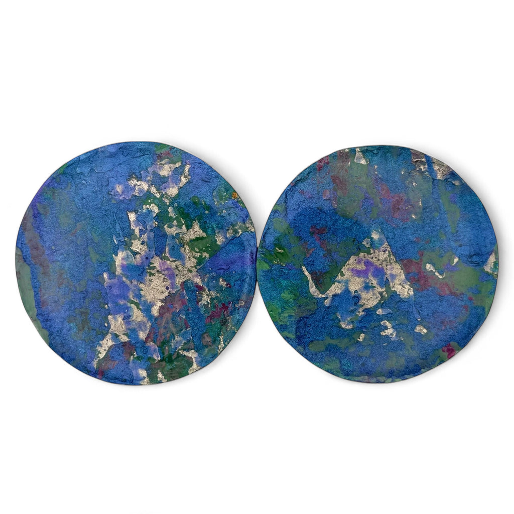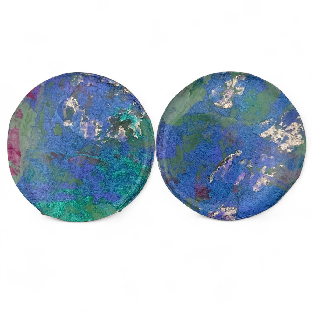 Each piece in this elegant jewellery collection begins as an original abstract painting, lovingly created on richly textured, handmade Indian paper—a surface that brings depth and character to every brushstroke.