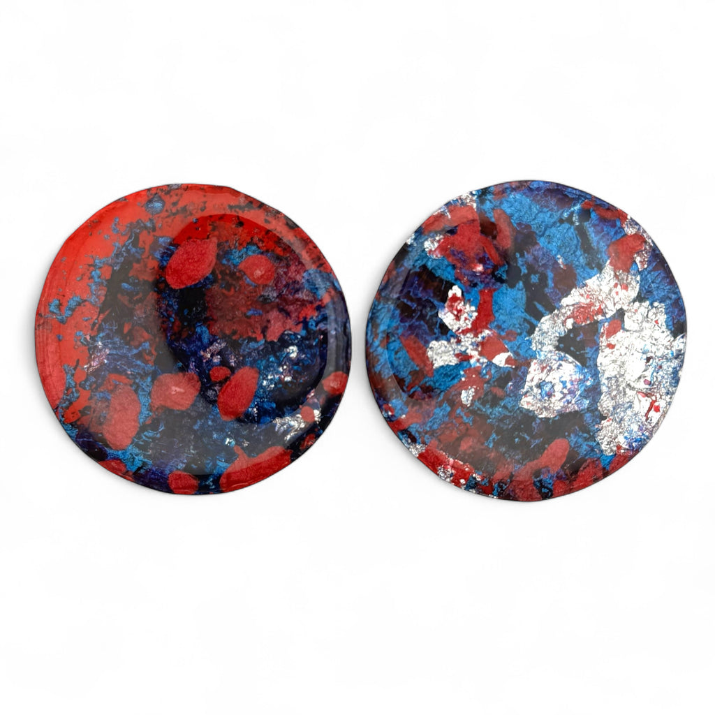 Each piece in this elegant jewellery collection begins as an original abstract painting, lovingly created on richly textured, handmade Indian paper—a surface that brings depth and character to every brushstroke.