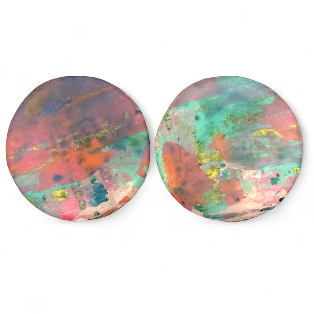 Each piece in this elegant jewellery collection begins as an original abstract painting, lovingly created on richly textured, handmade Indian paper—a surface that brings depth and character to every brushstroke.