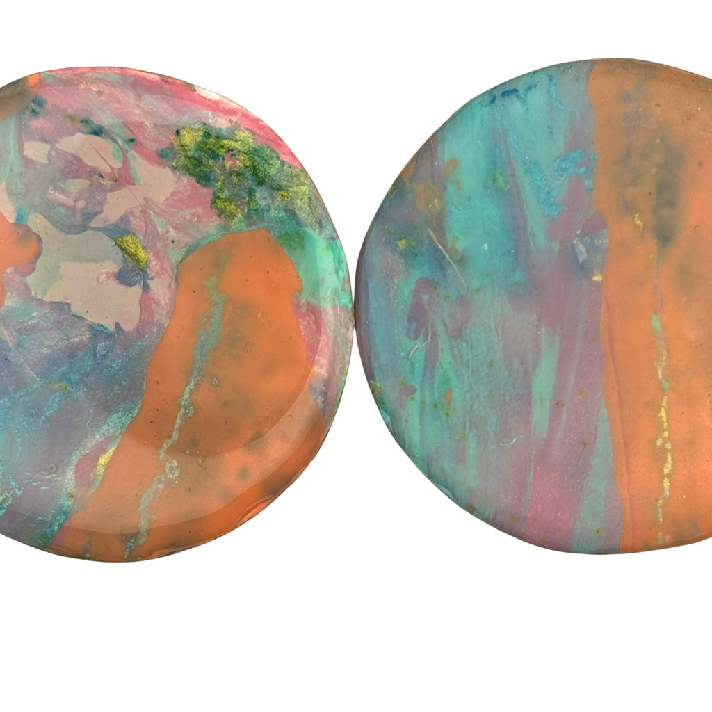 I carefully hand-cut each element from my artwork, meticulously edge and finish each one, and finally encase it in a crystal-clear, high-grade resin. This process enhances the richness of the colours and adds a luminous, glass-like shine that captures the light beautifully.