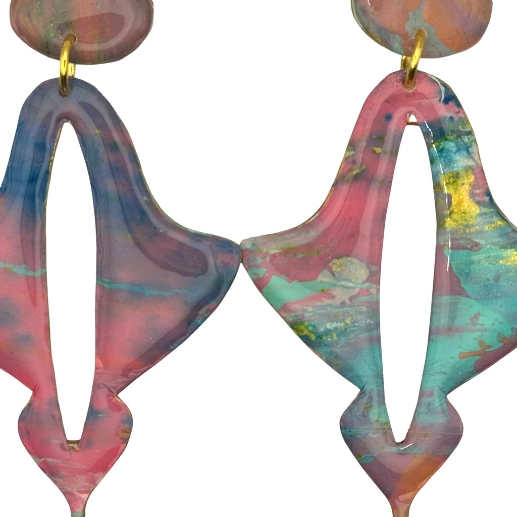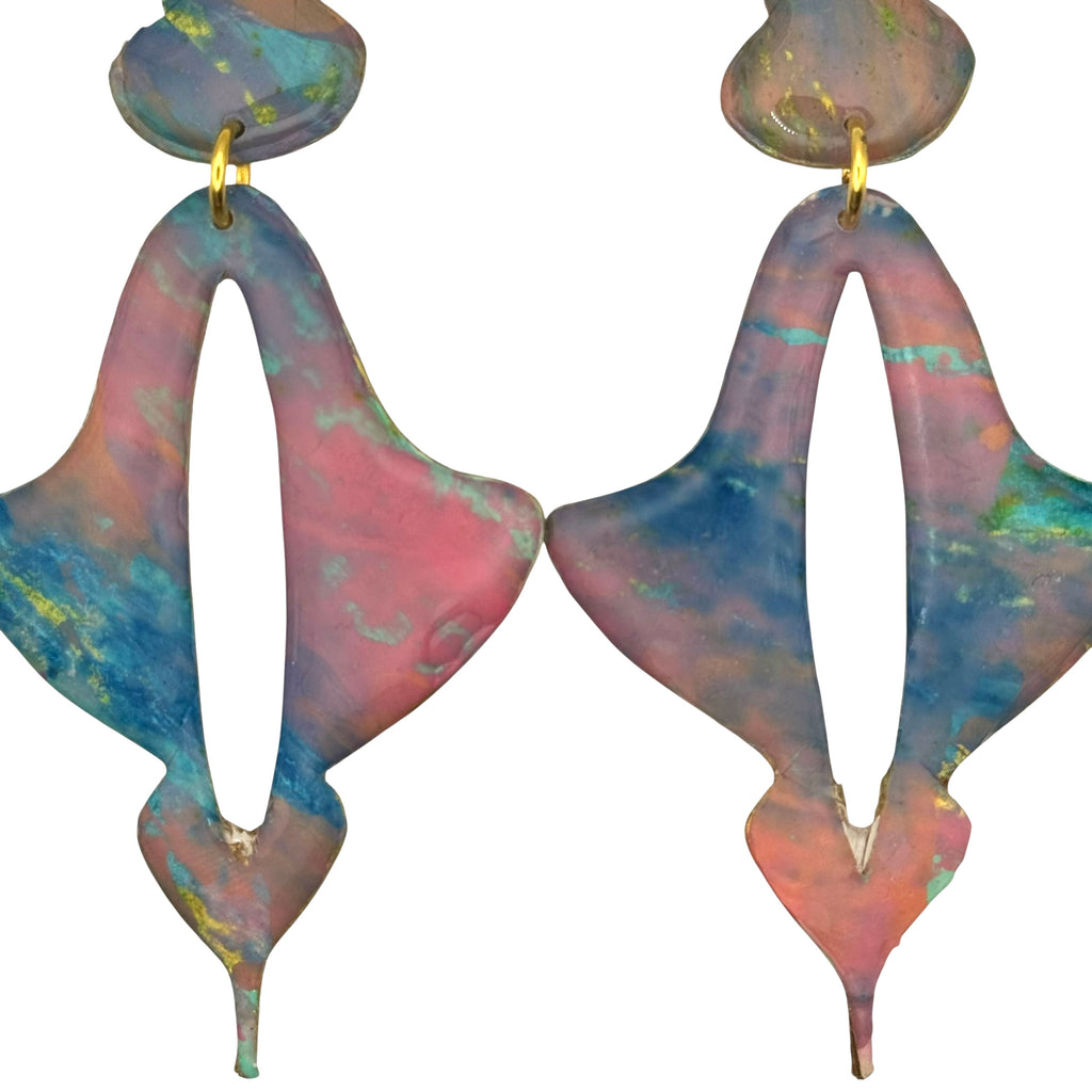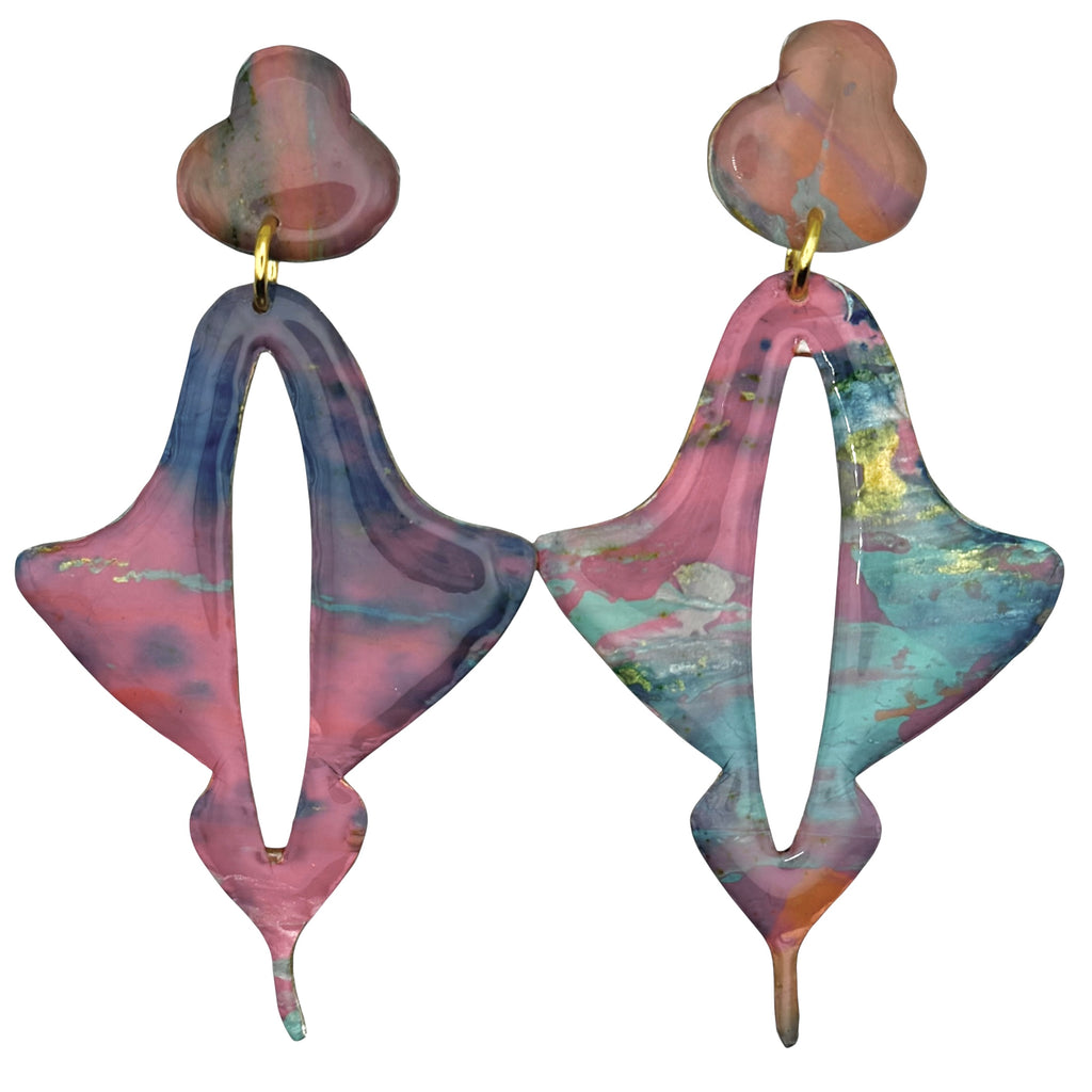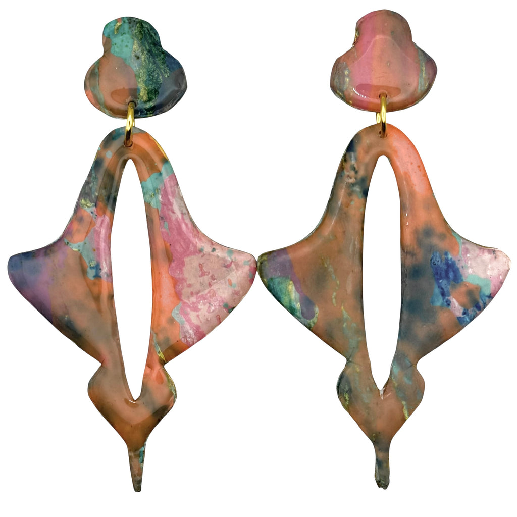 Moroccan Drop large earrings in art work- Fruit Punch.