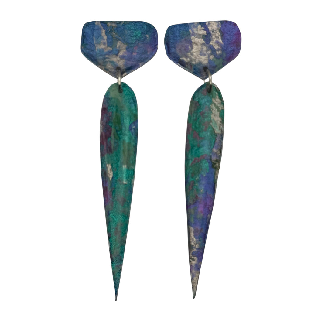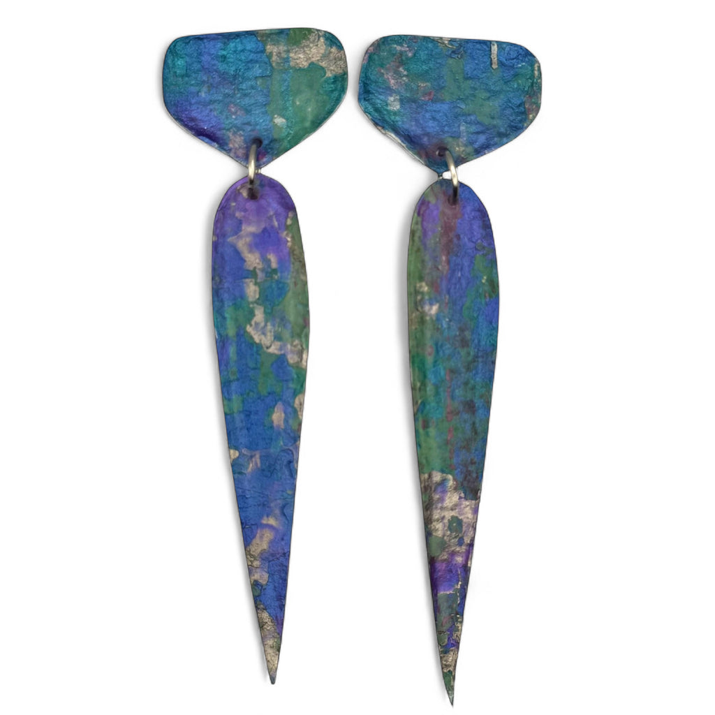 Each piece in this elegant jewellery collection begins as an original abstract painting, lovingly created on richly textured, handmade Indian paper—a surface that brings depth and character to every brushstroke.