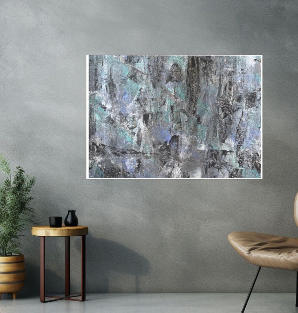 This textured artwork is moody, atmospheric, and full of movement- the perfect statement piece for a modern living room, office or gallery wall.
