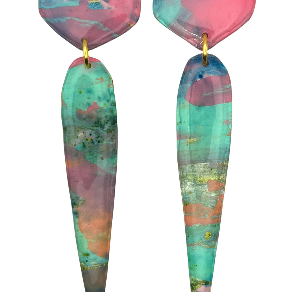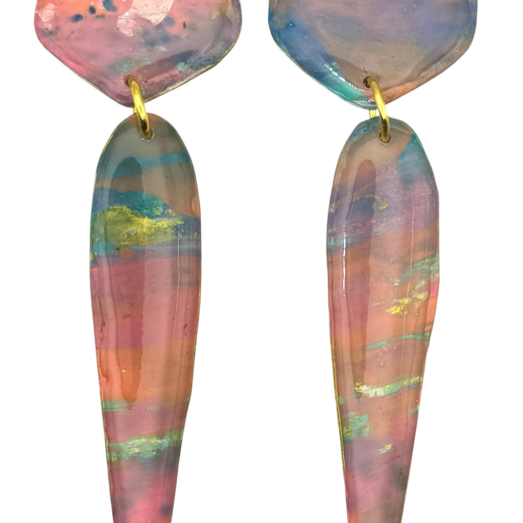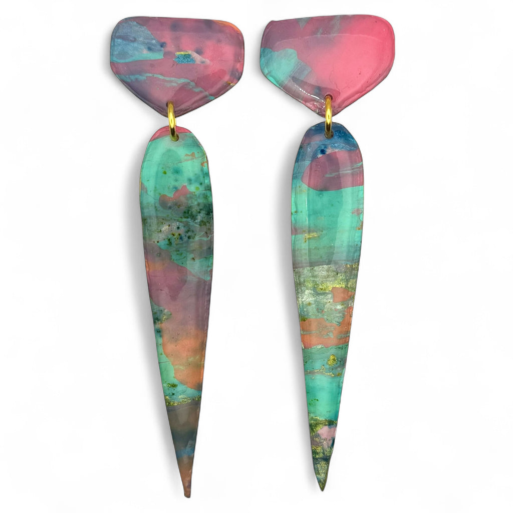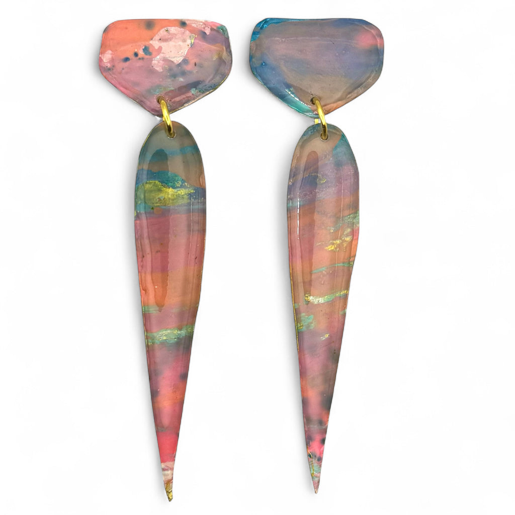 Each piece in this elegant jewellery collection begins as an original abstract painting, lovingly created on richly textured, handmade Indian paper—a surface that brings depth and character to every brushstroke.