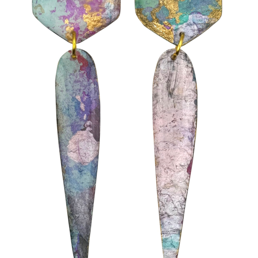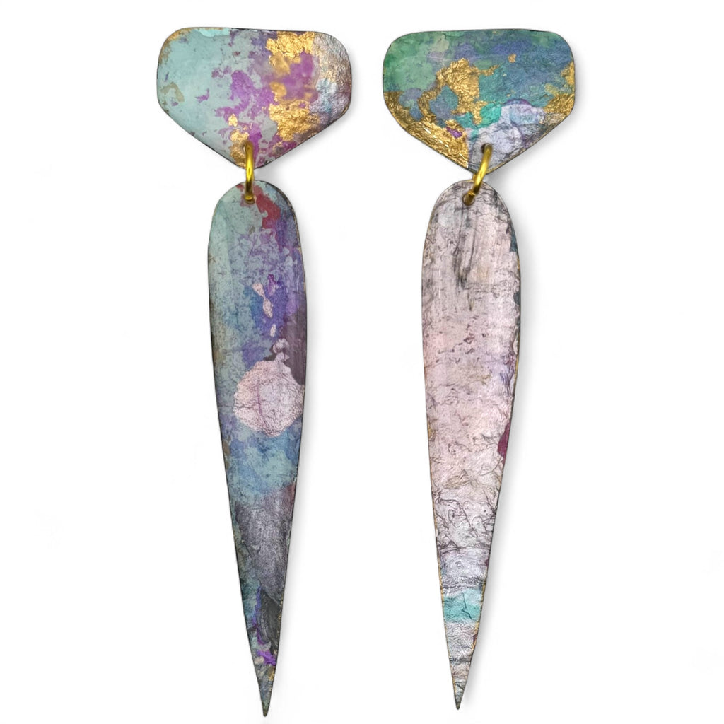 Shield Drop earrings in art work- Mediterranean Sunrise.