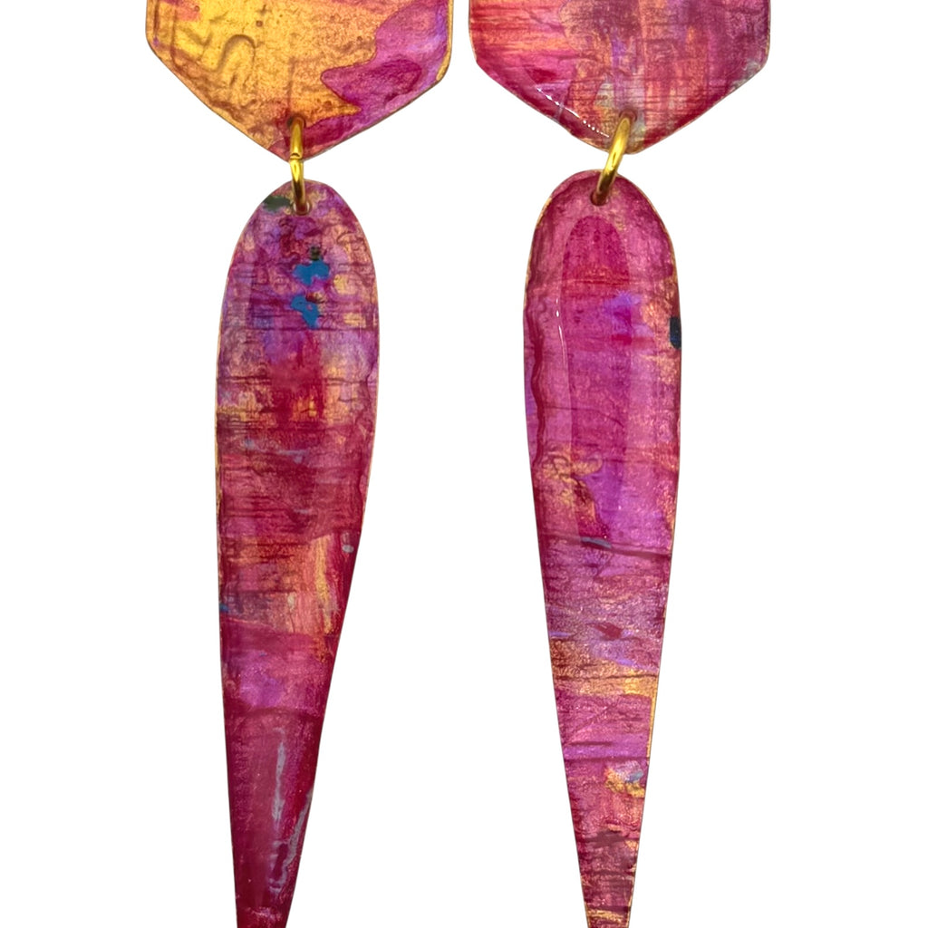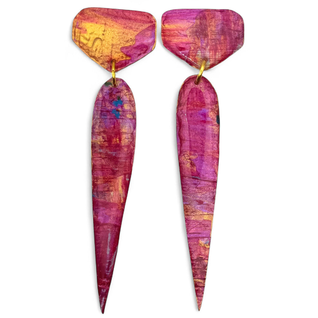 Shield Drop earrings in art work- Porlock Sunset.