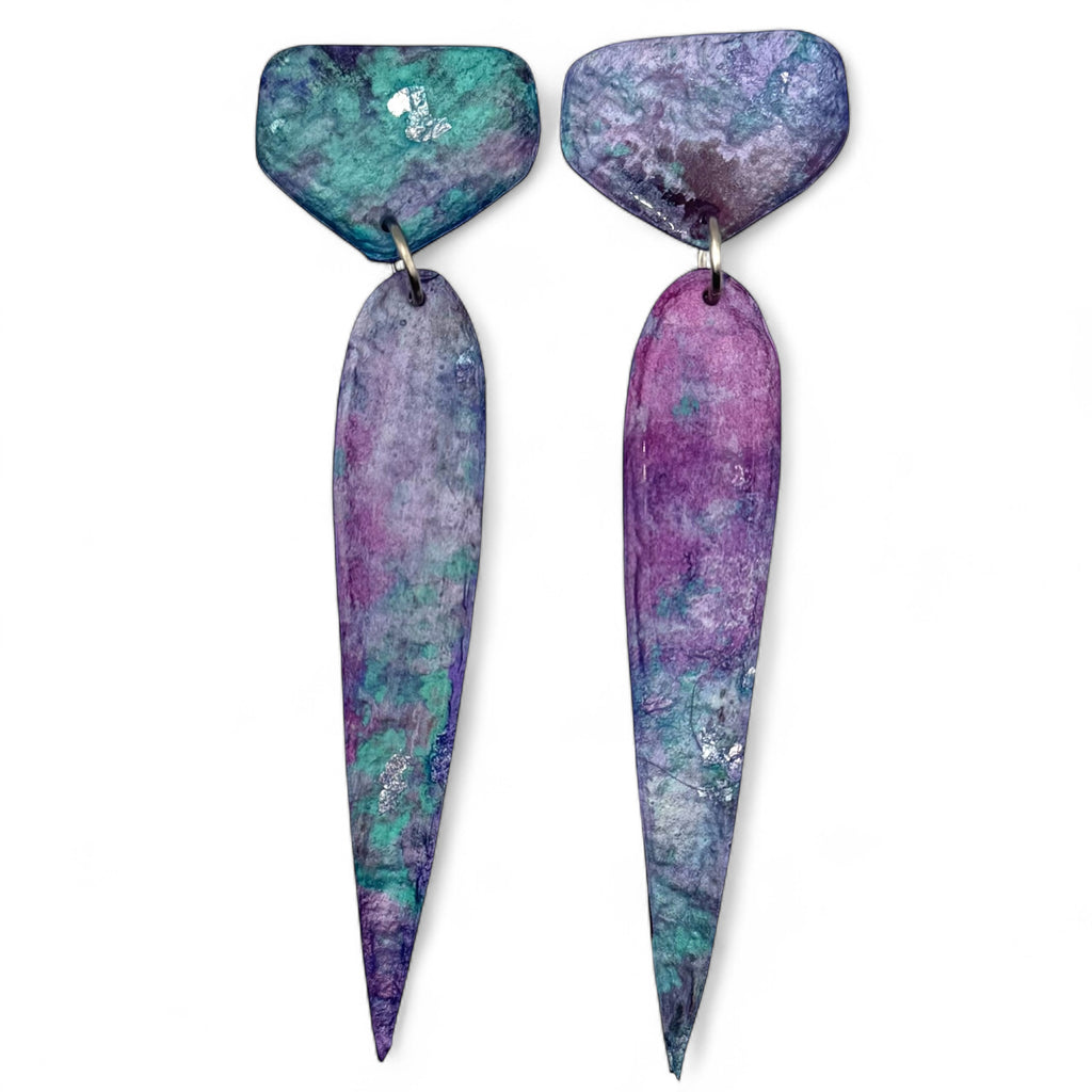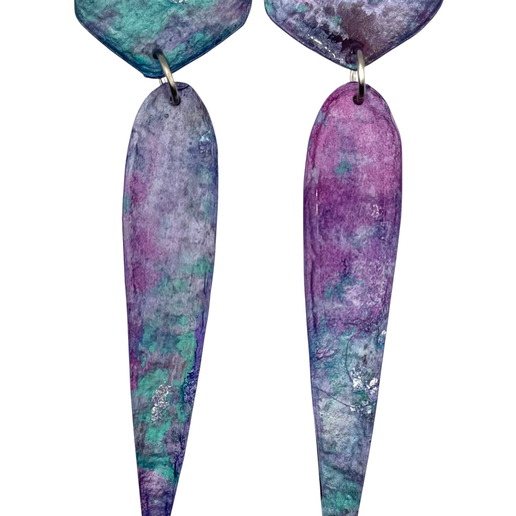 Shield Drop earrings in art work- Hydrangea Dreams.